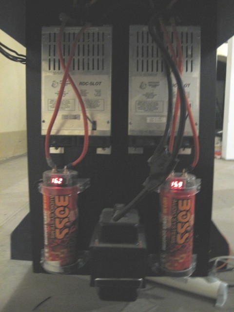 Bulldog RDC Slot 16.4 Volts /80 Amp on each lane, with one 4 Farads capacitor on each lane.