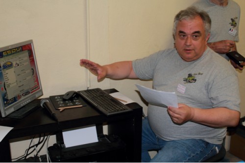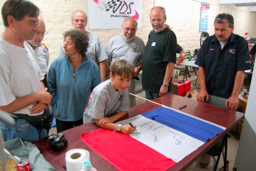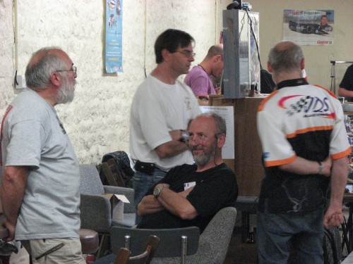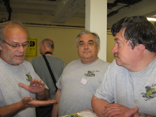 ![]() /War council at Race Direction : Georges makes a point while Marc and Maurice (who did all the electrcity in the cella rand was there just in case) listen. /Conseil de guerre à la Direction de Course : Georges explique un point pendant que Marc et Maurice (qui a fait toute l’électricité de la cave et était là au cas ou) écoutent. |