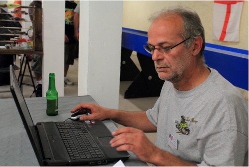 ![]() /Georges Louis was a key factor in the team, did the ladder software that will be perfected to 32, was in charge of the 1 minute start clock, tuned and tested Fred’s loan cars, raced some of these with some success, geting 4th place in Top Fuel and eventualy geting a PS car to within 4/1000th of Charle Pace’s new track record, thanks Jojo. /Georges Louis a été un élément clef de l’équipe, il a fait le logiciel de gestion de course qui sera prochainement opérationnel de 4 à 32 voitures, il a tenu l’horloge des 1’ au départ, a testé et fignolé les voitures de prêt de Fred, a couru avec certaines avec succès finissant 4è en Top Fuel, et amenant sa voiture de PS jusqu’à 4/1000ème du nouveau record de la piste de Charles Pace, merci Jojo. |
