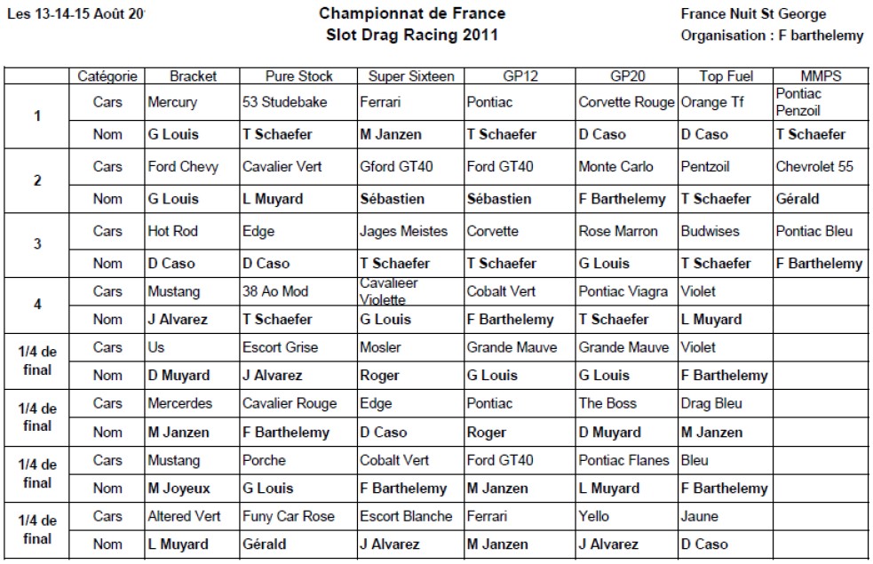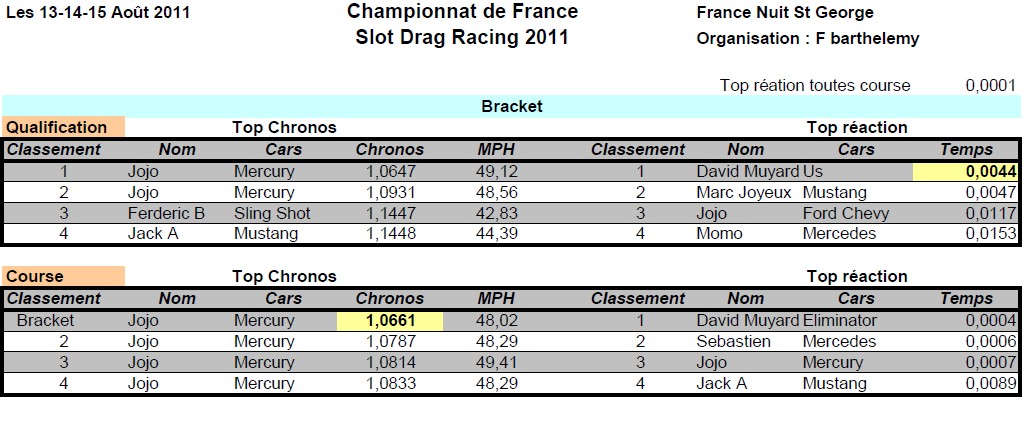 Championnats de France - Vendredi 12, Samedi 13 et Dimanche 14 Août 2011 - Nuits St Georges en Bourgogne.