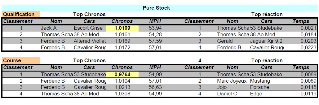 Résultats détaillés des qualifications Pure Stock