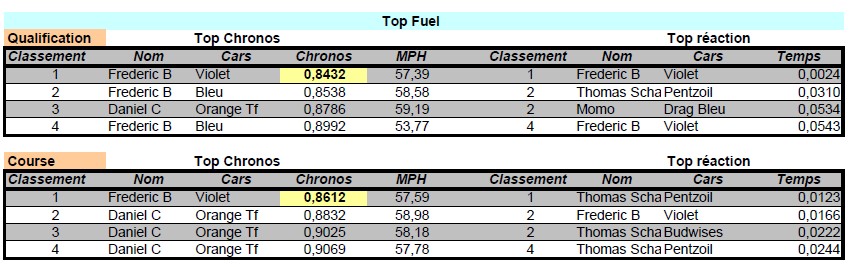 Résultats détaillés séries TOP FUEL