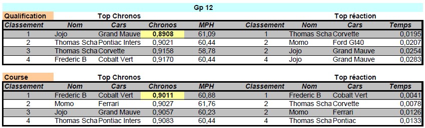 Résultats détaillés des qualifications GP12