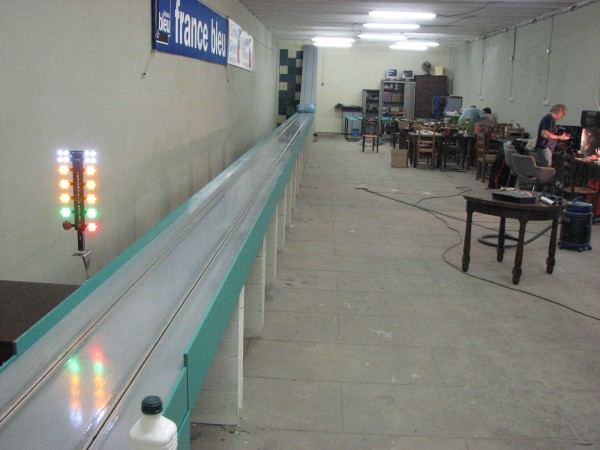 Record officiel et confirmé à 0.718 du Funny Car Monte Carlo de Fred, (repesé après le run à 92g donc de la marge de progression) la vitesse est de 75.42mph (121kmh), elle aussi confirmée, ça remue.Août 2011 - Nouveau local situé en rez-de-chaussée, nouvelle piste alignée Laser en construction.