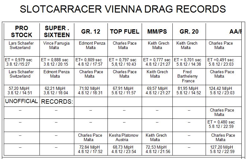 Le Maltais Edmond Penza est en tête des qualifs avec 0.820’’ / 68.4mph-(109.40kmh), devant Charles Pace à 0.833 mais beaucoup plus