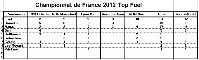 Résultats définitifs du Championnat de France Drag Slot 2012